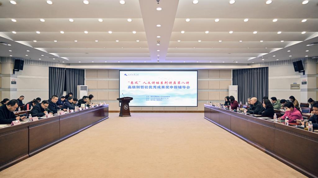 3月5日下午,“惠风”人文讲坛系列讲座第八讲在图书馆一楼报告厅举办,邀请我校获教育部高校科研优秀成果奖和省哲社优秀成果奖的教师代表作辅导分享。副校长胡云进出席讲座,讲座由人文社会科学处处长诸凤娟主持。