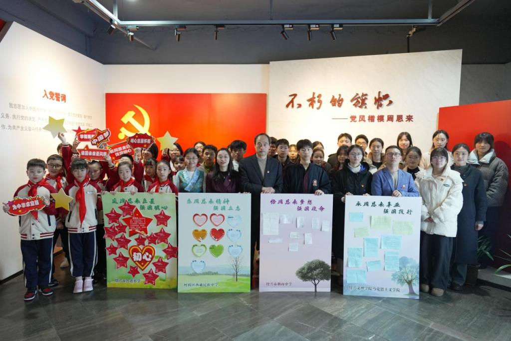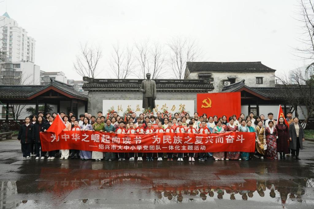 为深化新时代大中小学思政课一体化改革创新,引导青少年深刻理解中国式现代化的内涵与使命,3月12日下午,学校在周恩来祖居(纪念馆)开展了一场以“为中华之崛起而读书 为民族之复兴而奋斗”为主题的思政课一体化现场教学活动。活动通过理论筑基启智、情景交融润心、知行合一力行等形式展开,马克思主义学院师生党员、绍兴市稽山中学、柯桥区西藏民族中学、绍兴市鲁迅小学的思政课教师和学生代表等80余人参与。