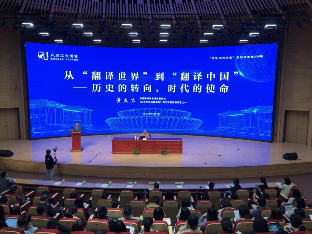 5月11日晚,“风则江大讲堂”338讲“从‘翻译世界’到‘翻译中国’——历史的转向、时代的使命”专题讲座在风则江大讲堂报告厅举行,中国翻译协会常务副会长、《习近平谈治国理政》(一至四卷)英文译稿定稿专家之一黄友义先生应邀作报告。校党委书记汪俊昌、各二级学院师生代表参加讲座。讲座由外国语学院院长胡朋志主持。