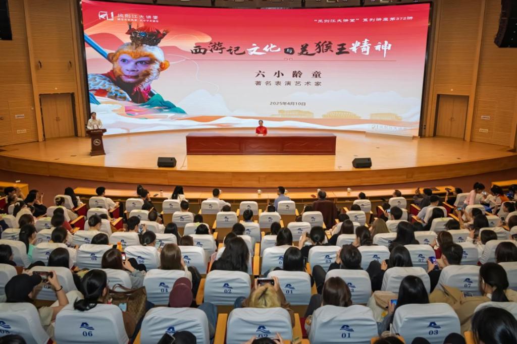 六小龄童做客风则江大讲堂作题为“西游记文化和美猴王精神”讲座