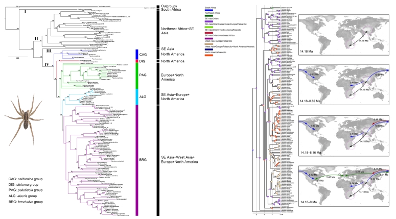 图3.全球唾蛛的生物地理重建