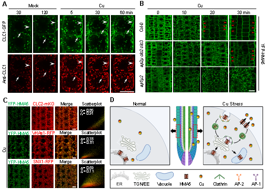 图1 网格蛋白介导的胞内运输调控植物铜耐受性