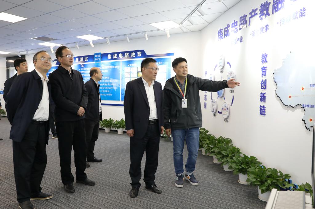 汪俊昌一行先后参观诸暨智能视觉产业园、浙江镨美科智能刺绣设备有限公司,了解岗位需求并看望校友。