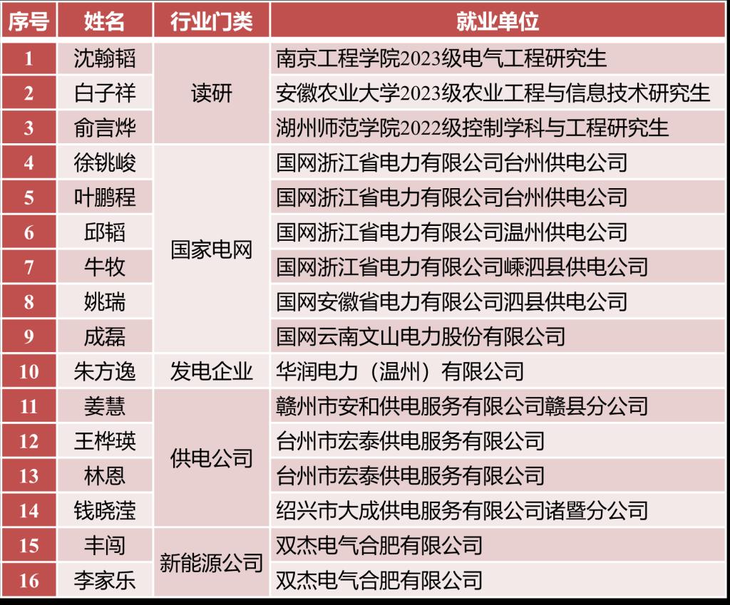 2022年6月底送走电气181班最后一位留校备考国家电网的学生姚瑞,为自己四年班主任工作画下了圆满的句号。非常荣幸、也非常自豪担任了电气181班的班主任,沈翰韬等3位学生分别就读南京工程学院等高校的研究生,徐铫峻等7位学生考入浙江省电力有限公司台州供电公司等国家电网或发电企业,王桦瑛等4位学生考入供电公司,丰闯和李家乐同学就职于智能输配电制造上市公司——双杰电气合肥有限公司。截止2023年5月,电气181班16位学生真正实现百分之百就业,百分之百专业对口、百分之百高质量和高收入就业,创造机械与电气工程学院历届毕业生考上国家电网数量和高质量就业率的历史新高。同时学生的成长成材也造就了班主任满满的幸福感与自豪感。