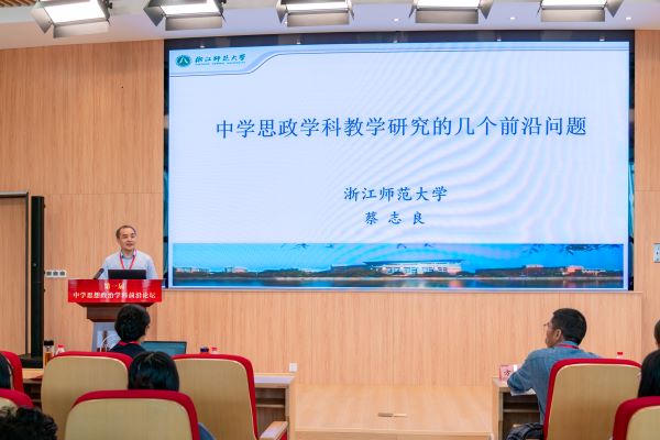 第二阶段,绍兴市柯桥区教师发展中心戴建华、杭州市文华中学韩英、杭州市临平第二中学王涛和绍兴市镜湖中学高珺、分别围绕《从中学教学研究的热词看毕业论文选题》《议题式教学与学科思维能力的培育》《教育科研模型漫谈》《代表课:思政教师专业成长的富矿》作报告,该阶段由马克思主义学院专业主任王明亮主持。